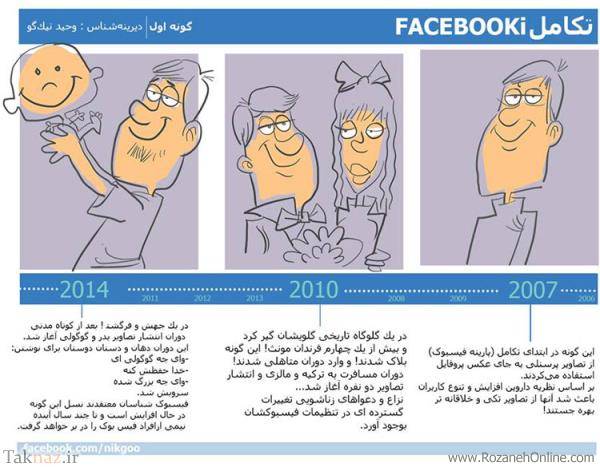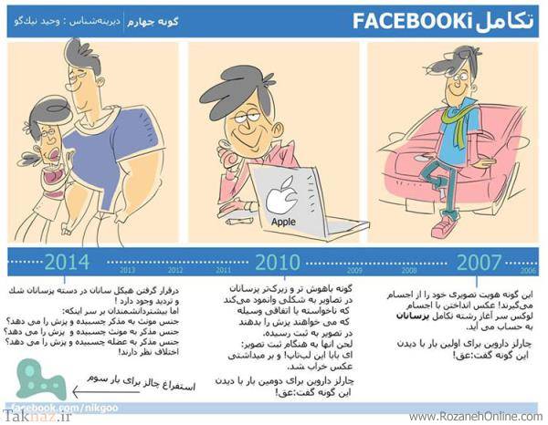 درباره تکامل افراد در فیس بوک عکس های طنزگونه ی زیادی موجود هستش